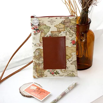 INDIGO indimap 世界地圖迷你吐司側揹包-復古棕